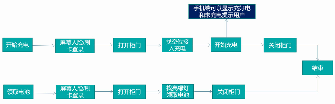 1. 在屏幕端操作選擇空柜充電,充好電取出工具;